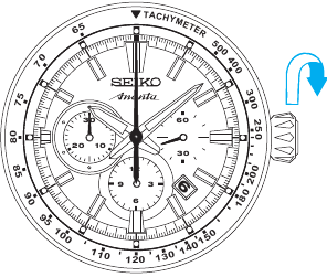 - Küçük saniye kolu saat 12 konumundayken tepeyi ikinci tıklamaya çekin. (Küçük saniye kolu yerinde durur.)