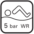 Kasa arkasında "WATER RESISTANT 5 BAR" (5 Bar Su Geçirmez) yazıyorsa, saatiniz 5 bara kadar dayanacak şekilde tasarlanmış ve üretilmiştir ve yüzerken, yelkencilik yaparken ve duş alırken takılmaya uygundur. - Su geçirmezlik (10 bar/15 bar/20 bar)*
