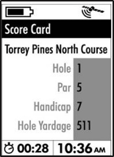 Puan Kartı sayfası, o anda oynadığınız delikle ilgili ilgili bilgileri görüntüleyen basit bir sayfadır; veriler her parkur için indirilen verilere dahildir ve kullanıcı tarafından değiştirilemez. O anda oynadığınız deliğin Puan Kartını görüntülemek için (Oyun sayfasının altındaki bayrak simgesinin yanındaki "delik #" ekranıyla belirtildiği gibi), Oyun sayfasındayken SAYFA tuşuna basmanız yeterlidir. Puan Kartı sayfasında gösterilen bilgiler şunları içerir: