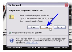 Yardage Pro Sync Yükleyici zip dosyasını indirmeye başlamak için Kaydet (Save)'i tıklayın.
