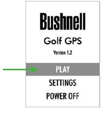 Parkurunuzu ve tee kutunuzu belirledikten sonra, Oyun sayfasına gitmeye ve yeşil mesafelerini okumaya hazırsınız. Ayarlar sayfasından, doğrudan OYUN sayfasına gitmek için SAYFA tuşuna kısaca basın veya Başlangıç ekranına dönmek için SAYFA tuşunu basılı tutun, "PLAY" (OYUN) seçeneğini seçin ve ENTER tuşuna basın.