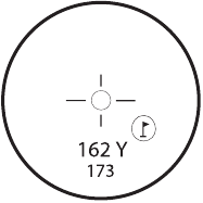 Tour® L7™ Jolt ile bakarken, Vivid Display'i etkinleştirmek için güç düğmesine bir kez basın. Nişan alma çemberini (görüş alanının ortasında bulunur) en az 5 yard uzaktaki bir hedefin üzerine yerleştirin, güç düğmesini basılı tutun ve görüş içi ekranın alt kısmına yakın bir yerde mesafe okuması görüntülenene kadar basılı tutun. Nişan alma çemberini çevreleyen artı işaretleri, lazerin iletildiğini gösterir. Bir mesafe elde edildikten sonra, güç düğmesini bırakabilirsiniz. Güç düğmesi bırakıldığında nişan alma çemberini çevreleyen artı işaretleri kaybolacaktır (yani lazer artık iletilmiyor).