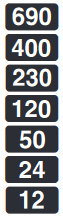 | Voltage range (Voltaj aralığı) | 12 V to 690 V ac/dc ±12 V, 24 V, 50 V, 120 V, | ![]() | ![]() | ![]() | ![]() |