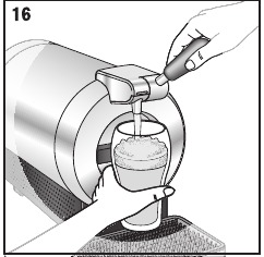 - Kolu olabildiğince hızlı bir şekilde ileri doğru çekin. Ardından, doldukça bardağı yavaş yavaş düzeltin (14-15-16) .