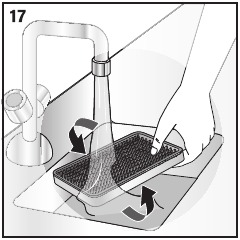 Not: damla tepsisi (I) ılık suda hafif bir deterjanla yıkanabilir (17) . Bulaşık makinesine de konulabilir. Paslanmaz çelik damla tepsisi (J) (modellere göre) bulaşık makinesinde temizlenemez.