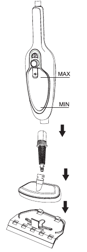 - Bu cihaz, Buharlı Paspas ve El Tipi Buharlı Temizleyici olarak kullanılabilir. İhtiyaçlarınızı karşılamak için aşağıdaki paragraflarda gösterildiği gibi tüm parçaları doğru şekilde monte edin.