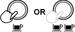 - 1 FİNCAN (1 CUP) düğmesine basın ve basılı tutun ve kalan kahveyi durulamak için kısa bir su akışı çalıştırın.