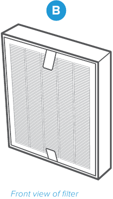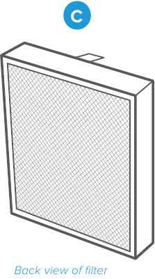 - Ön Filtreyi Kişisel HEPA filtresinin üzerine yerleştirin. Çekme tırnaklarının Ön Filtrenin üzerine katlandığından emin olun.