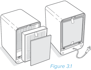 - Yeni filtreleri ambalajından çıkarın ve hava temizleyiciye yerleştirin. Ön Filtre ve çekme tırnakları dışa bakmalıdır. [Şekil 3.1]