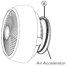 - Kablonu, ünitenin arkasında bulunan Hava Hızlandırıcının etrafına sarın. Kabloyu saat 2, 6 ve 10 konumlarında bulunan üç klipsle (G) sabitleyin.