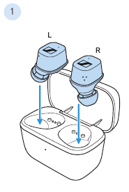 Her iki kulaklığı da şarj kutusuna yerleştirin, şarj kutusunun kapağını kapatın ve kulaklıkları şarj kutusundan çıkarmadan ve tekrar açmadan önce en az 10 saniye bekleyin.