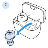 - Bir kulaklığı şarj kutusundan çıkarın, diğer kulaklığı şarj kutusunda bırakın.