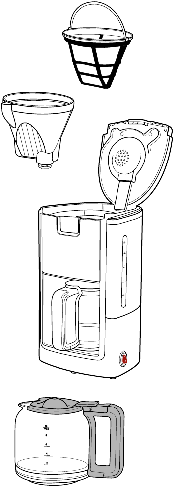 ÖĞÜTÜLMÜŞ KAHVE İÇİN ÖNEMLİ NOT:- Filtreyi tıkayabileceği için ince öğütülmüş kahve kullanmaktan kaçının.