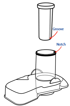 - Santrifüj kabını musluk yuvasına yerleştirin ve yerine oturması için aşağı doğru bastırın.