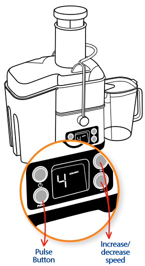 - Meyve suyu sıkma işlemi bittiğinde, sürahiyi çıkarmadan önce tüm meyve suyunun sıkma presinden akmasını bekleyin.