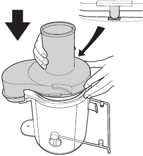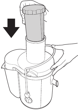 - Huni yuvasını ana gövdeye yerleştirin. NOT: Huni yuvasındaki güvenlik anahtarının ana gövdenin üstündeki yuvaya takıldığından emin olun, aksi takdirde meyve sıkacağı çalışmaz.