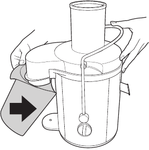 - Meyve sıkacağı tamamen durana kadar asla meyve sıkacağını açmayın veya meyve sıkacağının herhangi bir iç kısmına dokunmayın. Asla parmaklarınızı meyve sıkacağının musluğuna veya hunisine sokmayın.