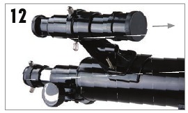 - Bulucu dürbünü, tüpün önüne bakacak şekilde yönlendirin. Bulucu dürbünü gösterildiği gibi vidaların üzerine yerleştirin.