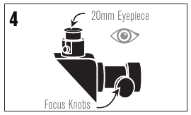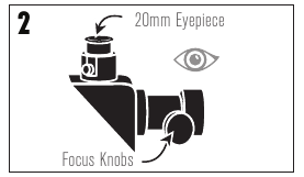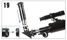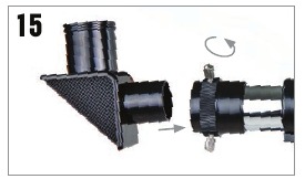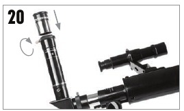 - 20 mm'lik göz merceğini yukarıda gösterildiği gibi diyagonalin namlusuna yerleştirin. Yerine sabitlemek için ayar vidasını sıkın.