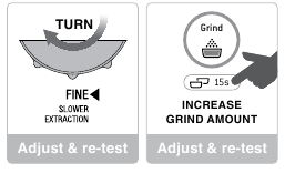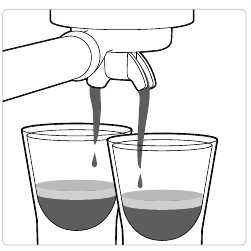| Espresso portafiltre ağızlarından sadece damlıyor veya hiç gelmiyor. | Kahve çok ince öğütülmüş. | Biraz daha kalın öğütün. 'Öğütme Boyutunu Ayarlama' ve 'Aşırı Çekme' bölümüne bakın. |