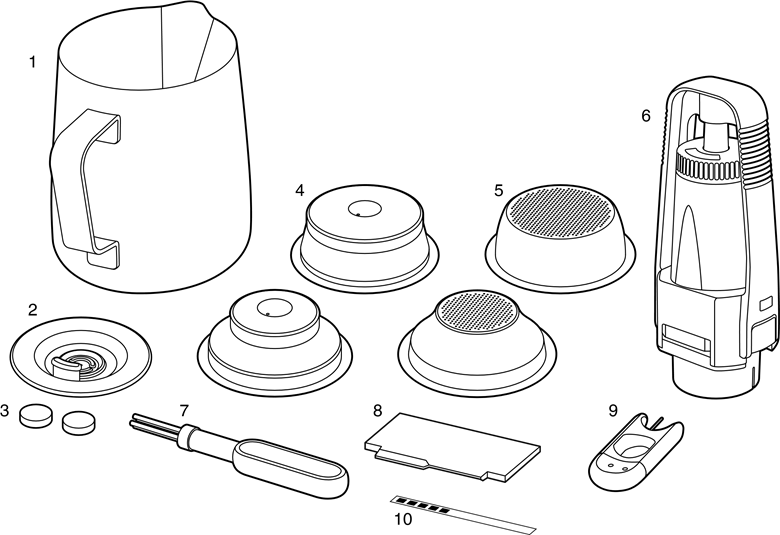 - Çift Duvarlı filtre sepetleri (1 fincan & 2 fincan) Önceden çekilmiş kahve ile kullanın.