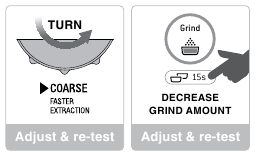 | Espresso çok hızlı akıyor. | Kahve çok kaba öğütülmüş. | Biraz daha ince öğütün. 'Öğütme Boyutunu Ayarlama' ve 'Yetersiz Çekme' bölümüne bakın. |