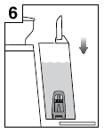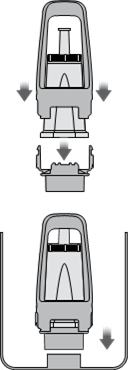- Takılan filtre tutucuyu su haznesine takmak için filtre tutucunun tabanını su haznesinin içindeki adaptörle hizalayın. Yerine sabitlemek için aşağı doğru itin.