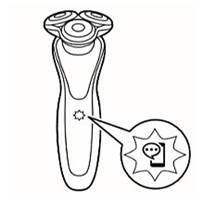 Bazı Philips tıraş makineleri yalnızca kablosuz olarak kullanılabilir. Bu tıraş makinelerini prize takılıyken açmaya çalışırsanız tıraş makinenizin fişini çekmeniz gerektiğini hatırlatmak için bir fiş sembolü beyaz renkte yanıp söner.