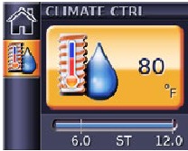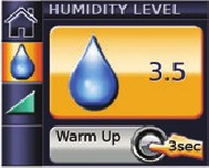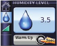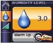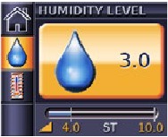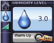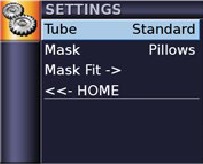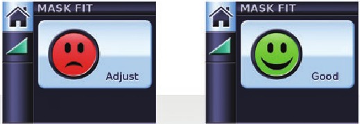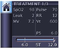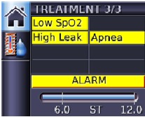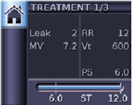 Bosim paneli: Ikki darajali rejimda bosim panelidagi qat'iy vertikal chiziqlar chiqarish va ilhomlantiruvchi bosimlarni ko'rsatadi. Davolash kuchayayotgan paytda (to'q sariq ramp belgisi bilan ko'rsatilgan) yoki o'zgaruvchan bo'lsa, bosim qiymatlari to'q sariq rangda paydo bo'ladi. Belgilangan bosimga erishilganda, bu qiymatlar oq rangda ko'rsatiladi. CPAP rejimida faqat belgilangan bosim ko'rsatiladi.