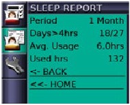 Ma'lumot menyusida sizning uyqu sifati, uyqu hisoboti va xizmat ko'rsatish ma'lumotlarini ko'rsatadigan bir qator ekranlar mavjud. Ma'lumot menyusini ko'rish uchun BOSH sahifa ekranidan