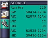 Xizmat ko'rsatish ma'lumotlarida qurilmaning umumiy ishlash soatlari (namlagich uchun isitish/sovutish vaqtlarini o'z ichiga oladi) va dasturiy ta'minot identifikatorlari ko'rsatiladi.