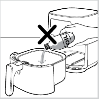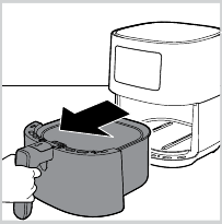 - Airfryer’ni tashiyotganda har doim gorizontal holatda ushlab turing. Agar tasodifan pastga egilib ketsa, savatli patnis qurilmadan sirg‘alib chiqishi mumkinligi sababli patnisni qurilmaning old qismida ham ushlab turganingizga ishonch hosil qiling. Bu ushbu qismlarning shikastlanishiga olib kelishi mumkin.