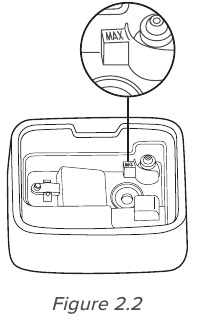 - Agar namlagich tumanini to'g'ri chiqarmasa, taglik kamerasida juda ko'p suv bor-yo'qligini tekshirish uchun maksimal suv chizig'ini tekshiring. Ortiqcha suvni to'kib tashlang. [ 2.2-rasm ]