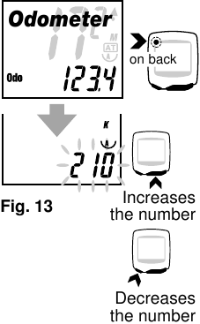 - G'ildirak Sozlamasi "A" yoki "B" ni tanlash uchun ODOMETR (Odo) funksiyasidan boshqa har qanday funksiyada bo'lganingizda SET tugmasini ushlab turing (Rasm. 12)