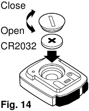 - Yangi litiy batareyani (CR2032) (+) qutbi yuqoriga qaratib joylashtiring (Rasm. 14).