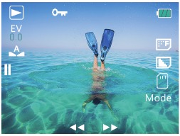 O'ynatish rejimiga o'tish uchun Rejim tugmasini bir necha marta bosing. O'ynatish rejimida video yoki fotosurat fayllarini ko'rish uchun Yuqori/Pastki tugmasini bosing.