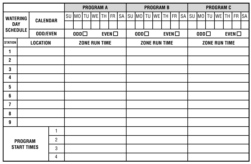 - Sug'orish jadvali: 7 kunlik taqvim yoki 365 kunlik soat/taqvim bilan toq-juft dasturlash