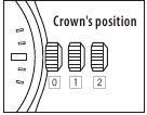 Soniya qo'li to'xtaydi va xronograf soati va daqiqa qo'llari mos ravishda qo'shimcha soatning soati va daqiqasini ko'rsatadi. - Asosiy soatning hafta kunini sozlash uchun tojni aylantiring.