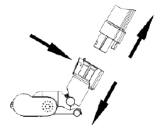 - Adapter (moslashtirgich) simini zaryadlash rozetkasiga ulash uchun batareya blokining o'rtasida joylashgan yorliqni ko'taring.