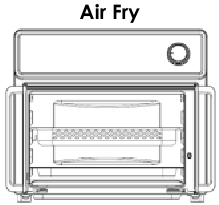 | Pirog** | Pastki qatlam jigarrang bo‘lishni boshlaydi* | Ikki qatlamli pirog | Qalay havo tokchasiga joylashtirilgan | 2 (BAKE 2) | Air Fry | 350°F | 35-45 daqiqa |
