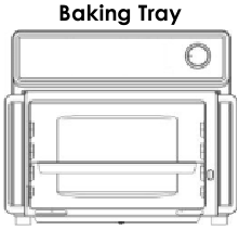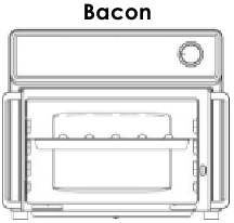 | Tovuq sonlari (suyakli) | Tushib ketadigan yog‘ va sharbatlarni ushlab qolish uchun pishirish patnisini eng past darajaga joylashtiring. Har bir qo‘shimcha oz uchun qo‘shimcha 1-2 daqiqa qo‘shing. Maksimal tavsiya etilgan sig‘im - 4 ta suyakli tovuq soni (oyoqcha biriktirilmagan). Pishirish jarayonining yarmida ag‘daring. |