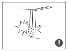 - Muzlatgich eshiklari o'rtasidagi va eshiklar va muzlatgich korpusi o'rtasidagi bo'shliqlar kichik, barmoqni siqib qo'ymaslik uchun qo'lingizni ushbu joylarga qo'ymaslikni unutmang. Buyumlar tushib ketmasligi uchun muzlatgich eshigini yopayotganda ehtiyot bo'ling.