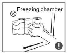 - Mahsulotga zarar yetkazmaslik yoki yong'in hodisalarining oldini olish uchun muzlatgichga yonuvchan, portlovchi, uchuvchan va yuqori korroziy moddalarni qo'ymang.
