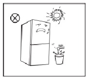 - Issiqdan uzoqroq tuting va to'g'ridan-to'g'ri quyosh nuridan saqlaning. Zanglash yoki izolyatsiya effektining kamayishiga yo'l qo'ymaslik uchun muzlatgichni nam yoki suvli joylarga qo'ymang.