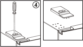 - Pastki ilmoqni shkafning chap tomoniga o'rnating. Sozlanishi mumkin bo'lgan oyoqlarni o'rnating.