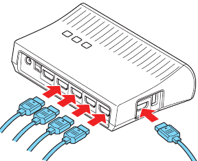 - HDMI kabellarini video kiritish qurilmalaringizga va WirelessHD Transmitterning yon va orqa tomonidagi HDMI portlariga ulang. Transmitterningizga beshtagacha kiritish qurilmasini ulashingiz mumkin. Kirish manbalari o'rtasida almashish haqida ma'lumot olish uchun "WirelessHD kontentini ko'rish" ga qarang