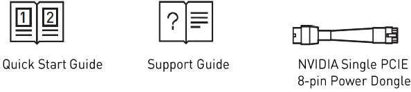 GeForce RTX 3060 Ti grafik karta qutisiga quyidagi uskunalar va hujjatlar kiritilgan.
