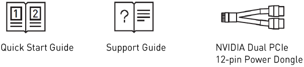 GeForce RTX 3090 grafik karta qutisiga quyidagi uskunalar va hujjatlar kiritilgan.