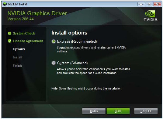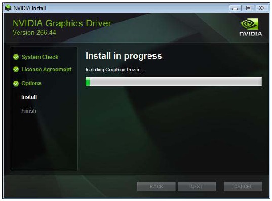 - Drayverni o'rnatish CD-sini joylashtiring yoki siz yuklab olgan GeForce drayverining bajariladigan faylini ikki marta bosing www.nvidia.com/drivers. NVIDIA Setup dasturi ishga tushadi va drayverlarni o'rnatadi.