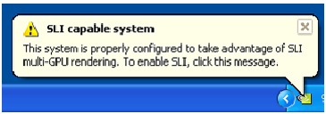 Siz SLIni tizim trayidagi SLI-ni qo'llab-quvvatlaydigan tizim pufagiga bosish yoki NVIDIA Control Panelga o'tish orqali yoqishingiz mumkin.